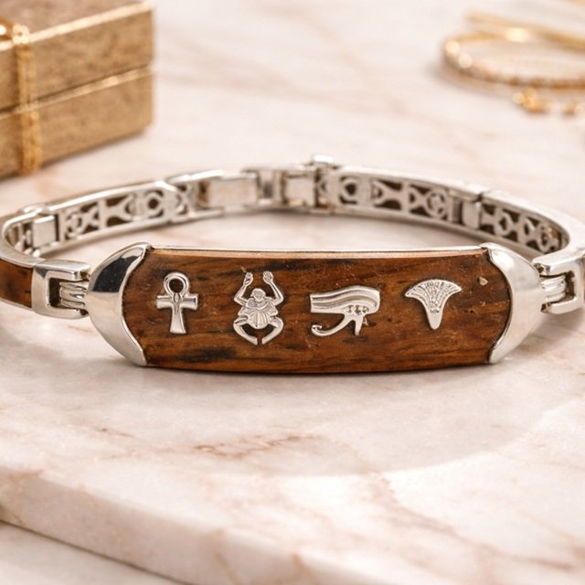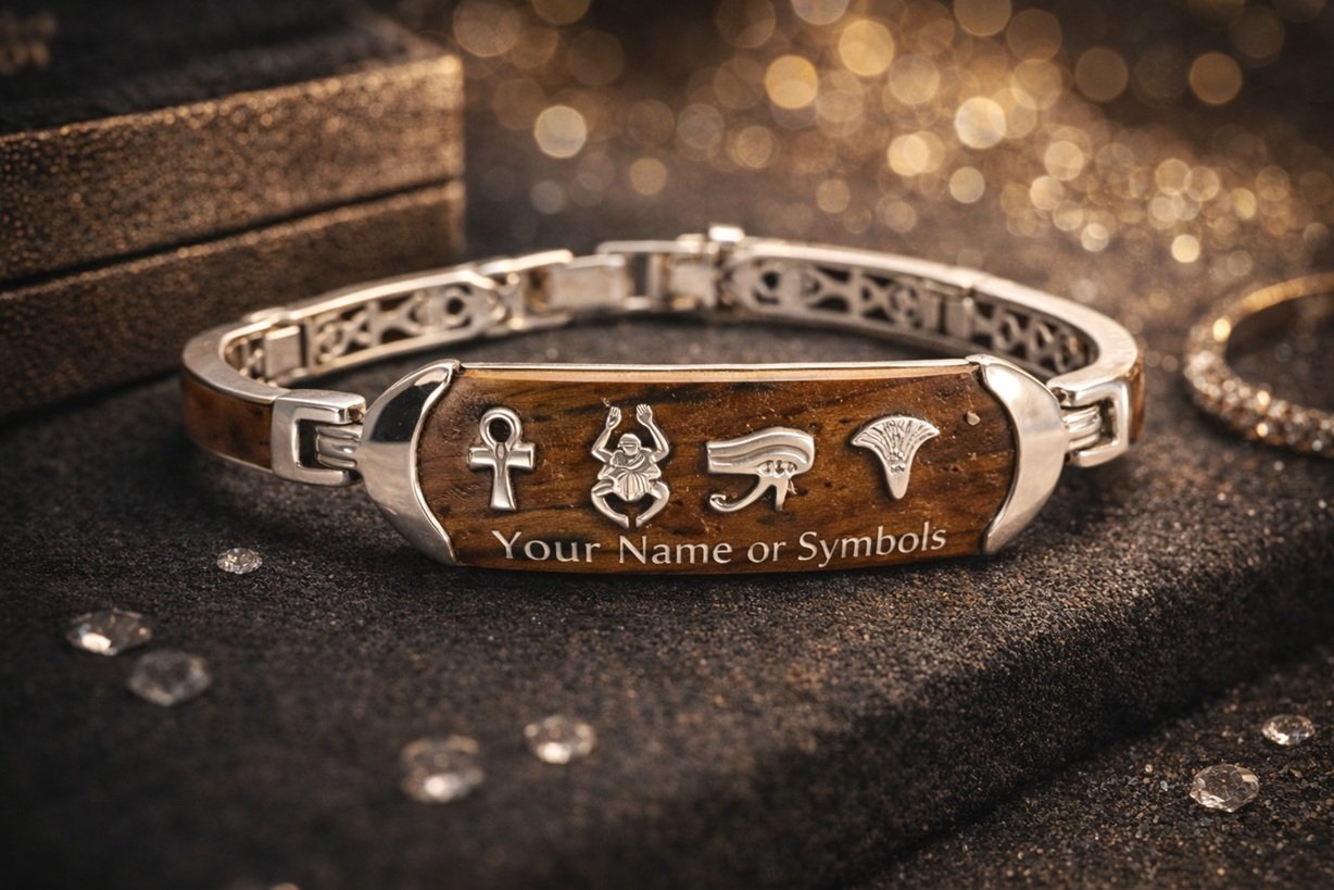 The central plate can be custom engraved with your name or meaningful Egyptian symbols, making each piece truly unique.