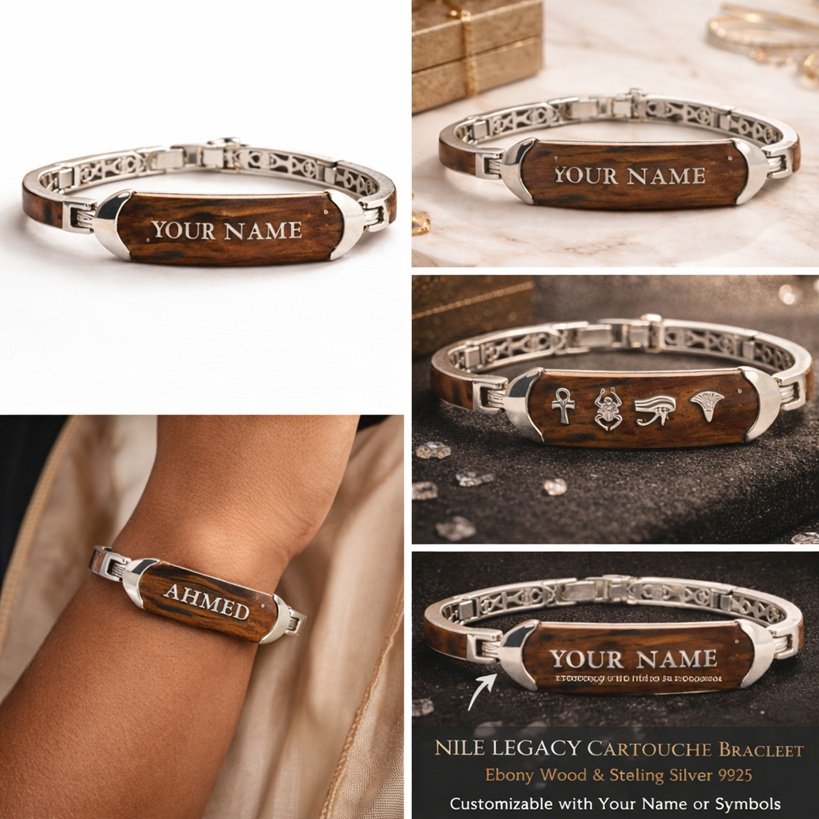 Celebrate history, craftsmanship, and personal identity with the Nile Legacy Cartouche Bracelet. Inspired by the ancient Egyptian cartouche—an oval symbol used to protect royal names—this bracelet combines luxury materials and meaningful symbolism.